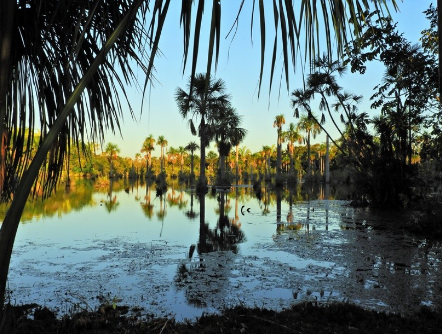 A Lagoa das Araras é o santuário onde centenas de aves retornam aos buritis no fim do dia para dormir. Foto: Divulgação.